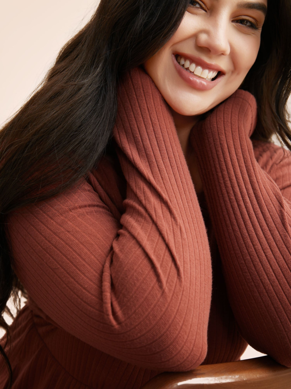 Solid Waffle Knit Overlap Hem Dusty Pink T-shirt